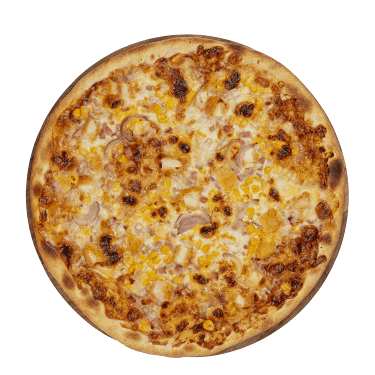sos bbq, mozzarella, bacon, ceapa, porumb, piept de pui, cheddar