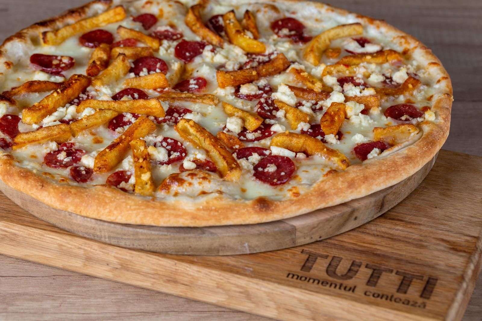 sos alb, mozzarella, cârnat, cartofi, telemea de vaca